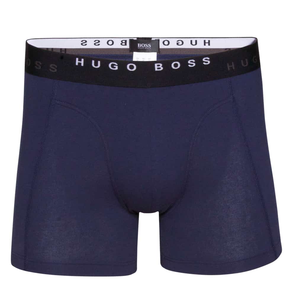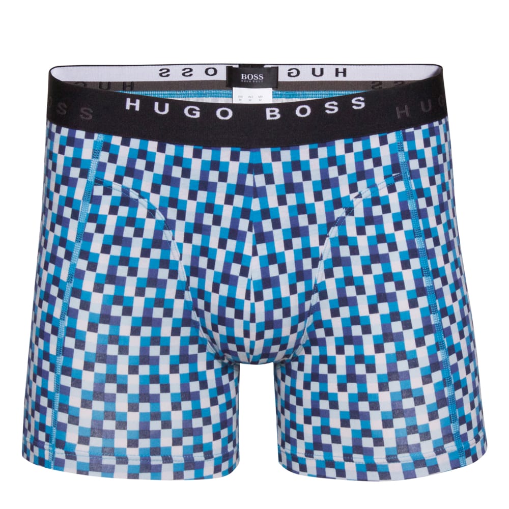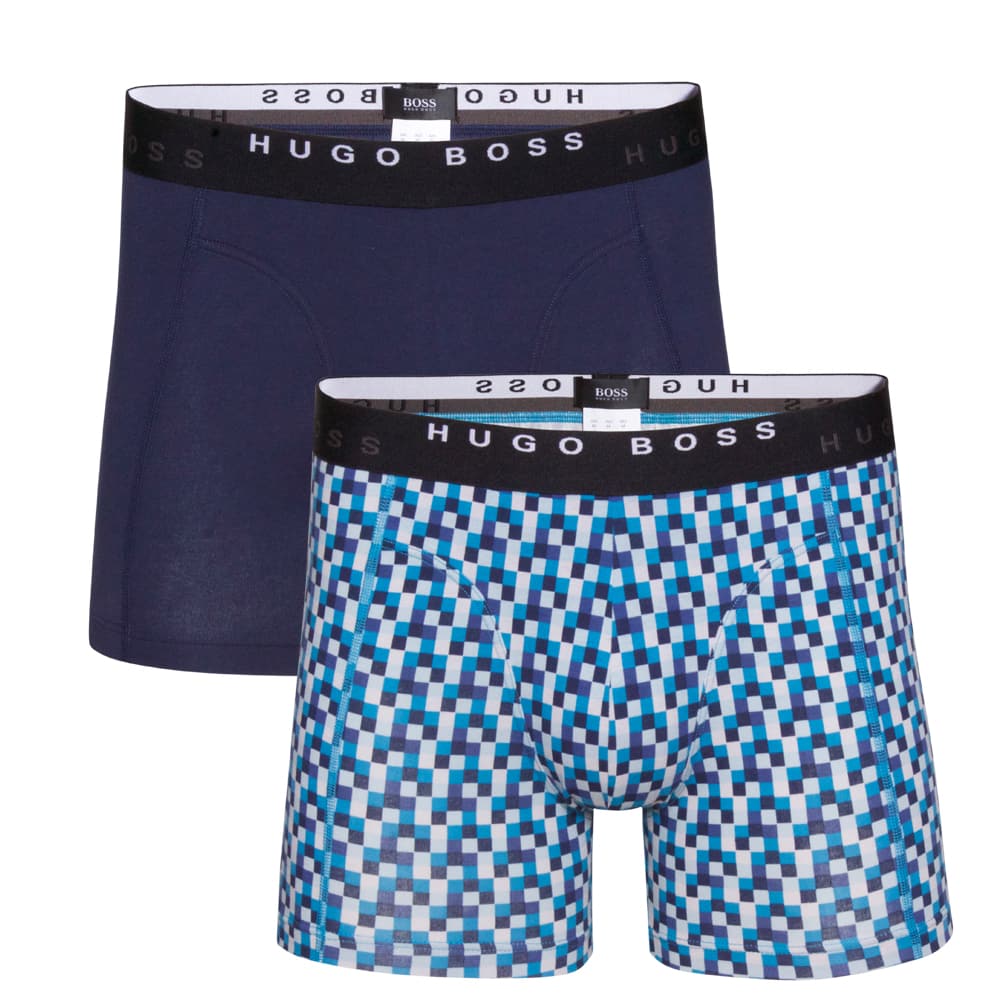 Lækker 2-pack fra Hugo boss. I denne pakke får du et par ensfarvet mørkeblå boxershorts samt et par ternet. I livet er boxershortsene lavet med en den originale elastik, hvor er på elastikken er vævet Hugo Boss med kontrastfarve. Boxershorstene har en super pasform, og tilpasser sig proppen da de er lavet med elastan. Denne model er med lange ben, og bliver leveret i en lækker Hugo Boss æske.